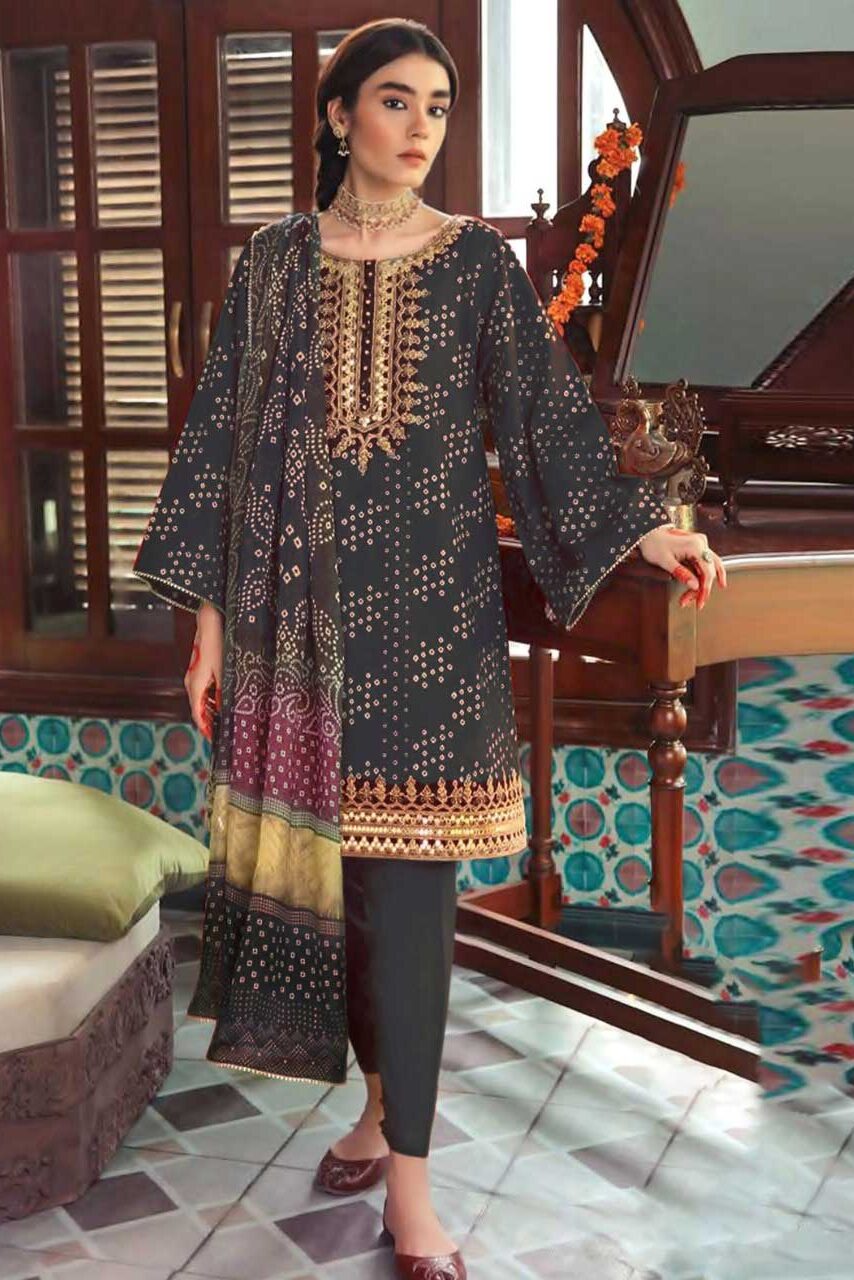 3 Pc Embroided Lawn Suit With Lawn Dupatta